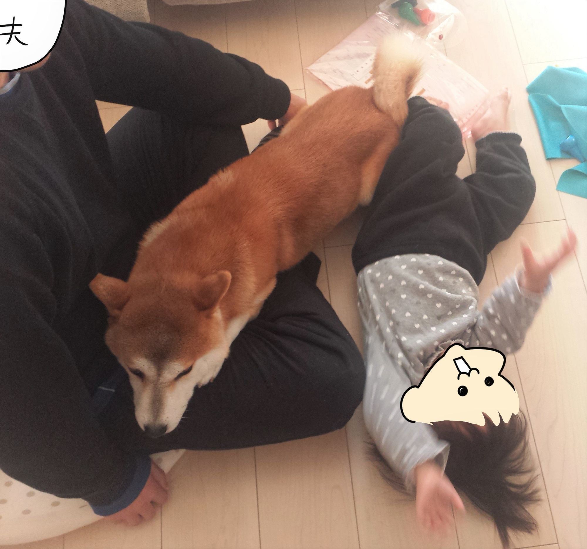 娘もパパが大好きです。タロさんがパパといると、すぐにやってきて、パパのお膝の上に座ります。