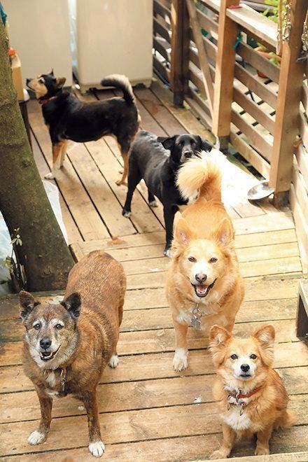 散歩の順番が回ってくるのを、今か今かとうれしそうに待っている保護犬たち