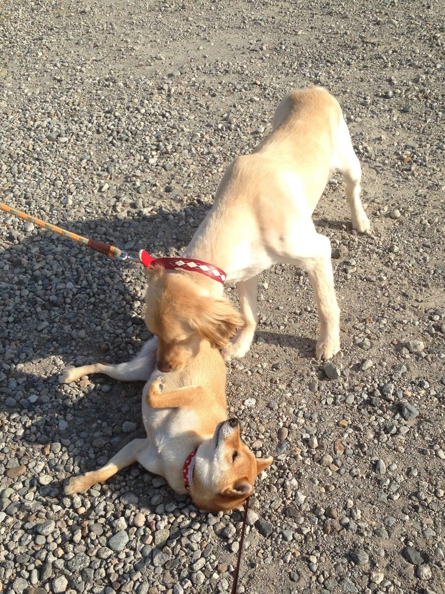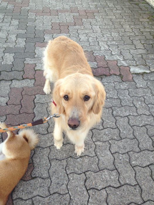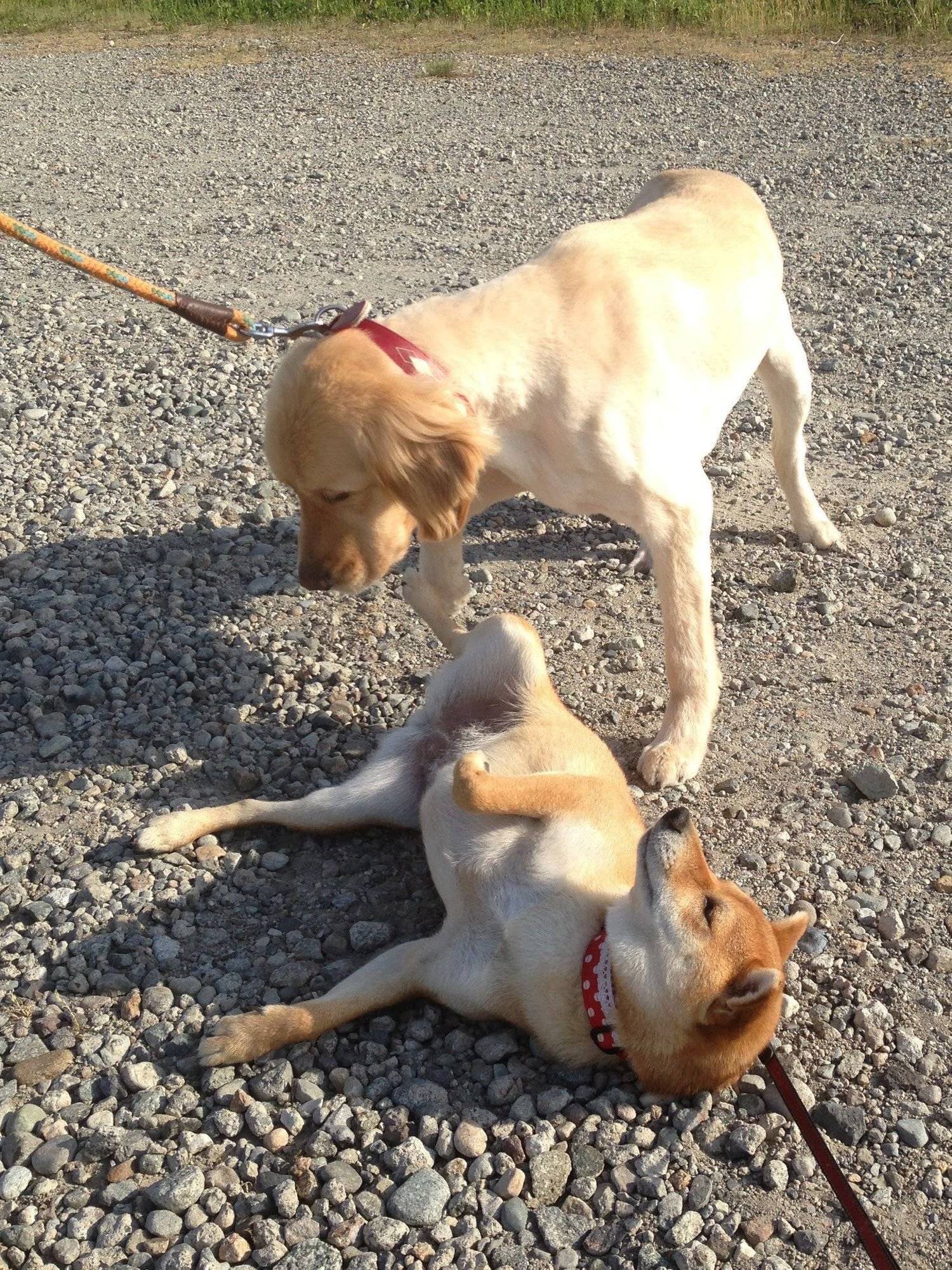 ゴールデンレトリバーのニコちゃんです。マロたんより2歳年上のシャイボーイです。マロたんがどんなにお腹を見せて「だいすき!」のアピールをしても…。