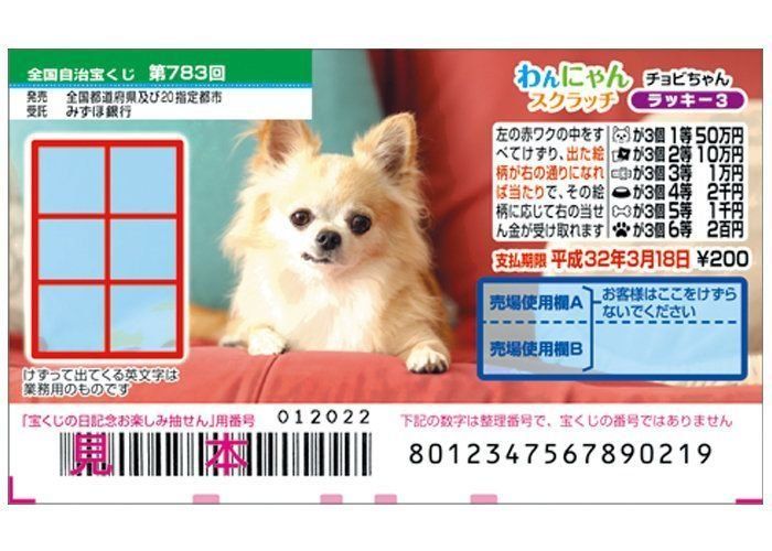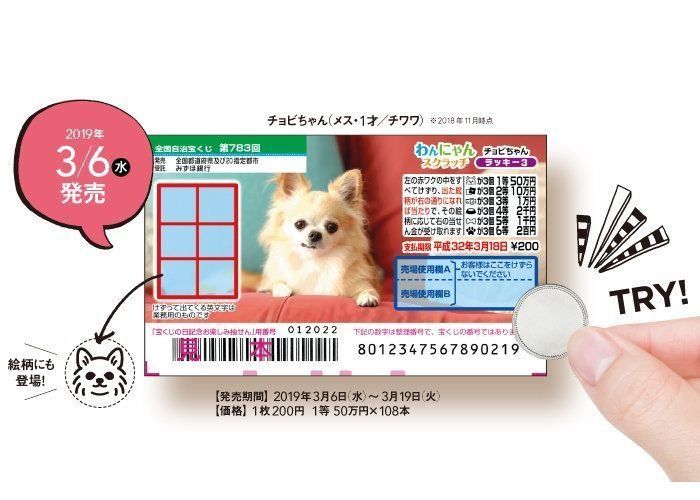 スクラッチ経験者も未経験者も、お出かけ先で売り場を見かけたら、受賞者の愛犬・愛猫が券面の「わんにゃんスクラッチ」を手に入れて、削るわくわく感を味わってみてはいかが?