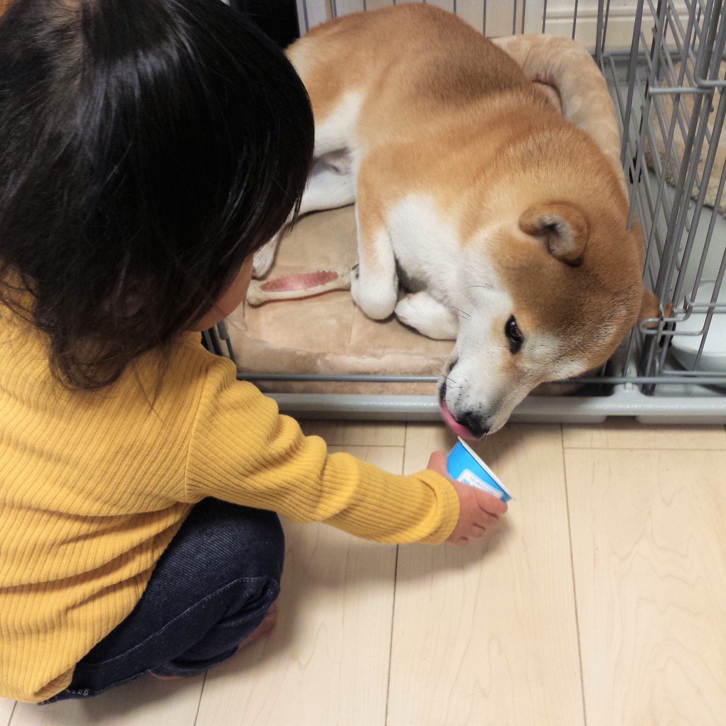 これには娘も諦めたのか、カップを持って寝ながら舐めるタロさんをずっと見ていました。