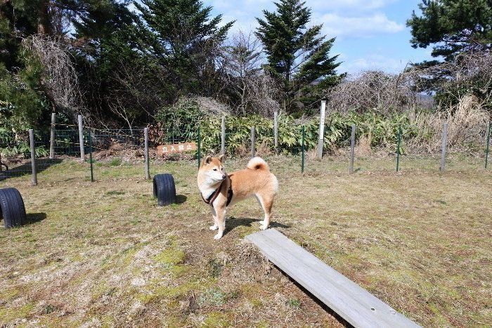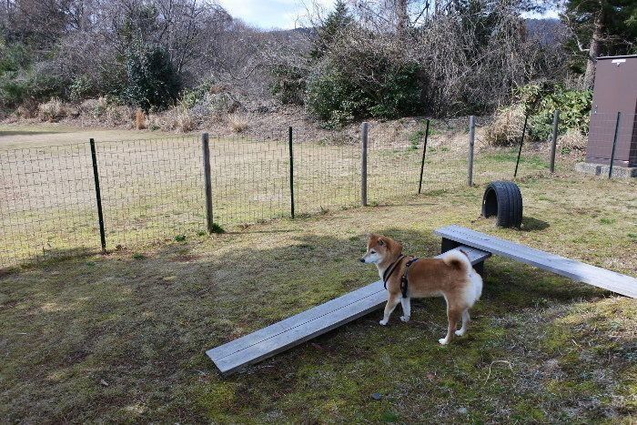施設内のドッグランも「ご自由にどうぞ」なスタイルでした。この日は、他に利用者がいなかったので遊ばせてもらうことにしました。「さぁ、思う存分ランしておいで!」とリードを外しても匂いを嗅ぐだけの、ドッグのランでランしないマロたんなのでした。