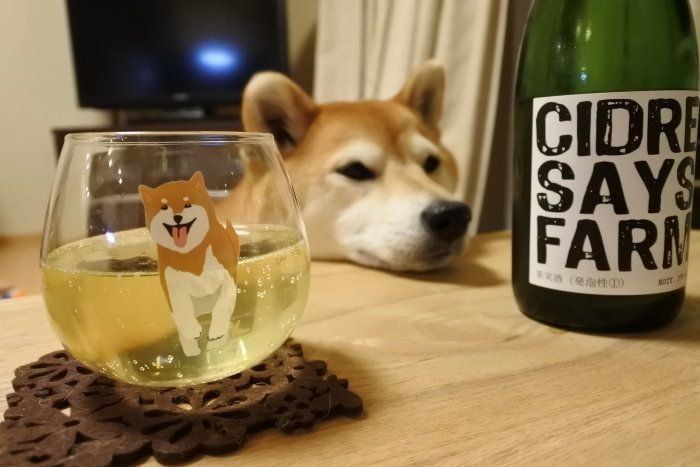 帰宅後は、柴犬とワインが好きな人にはおなじみの「SAYS FARM(富山県氷見市)」のシードルで乾杯。スッキリと辛口で美味しいのでおすすめです。マロたんは、自分へのお土産がなくてすねてます。
