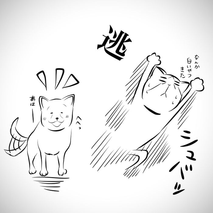 一方、シロは軽く追いかけようとしたり、消極的に一度だけ吠えてみたり。いつか仲良くなる日はくるのでしょうか……。