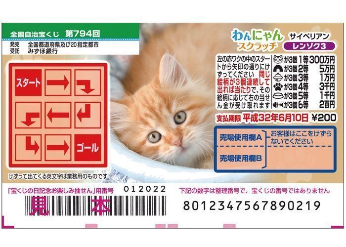 犬や猫のかわいい券面が飼い主さんの間で人気上昇中の「わんにゃんスクラッチ」。1枚100円のスクラッチで、1等10万円が当たるチャンスも! 早速、購入方法と楽しみ方をチェックしましょう。宝くじ高額当せん者の星座や血液型、イニシャルも大公開!