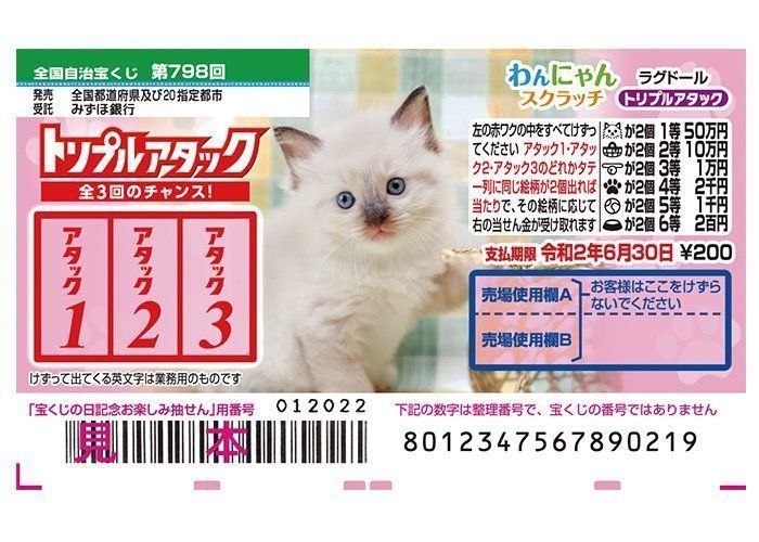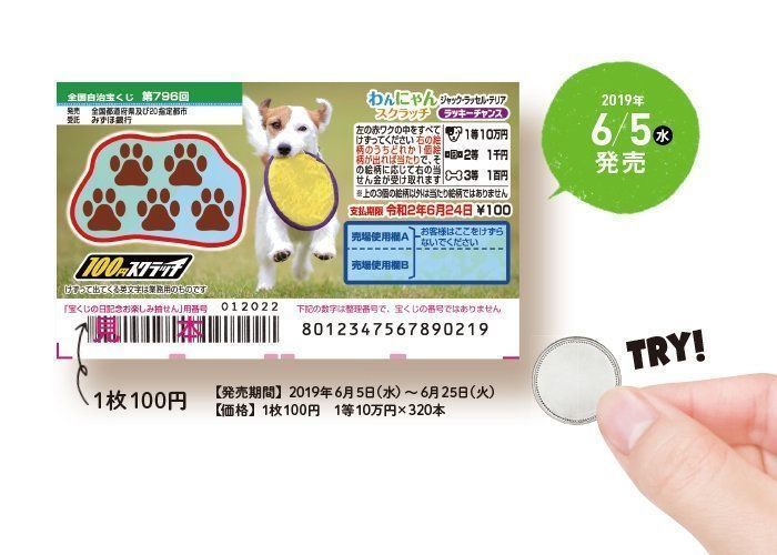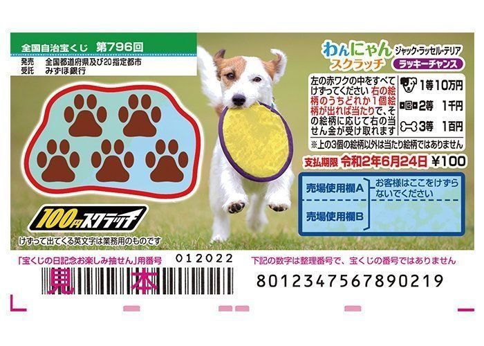 発売中の「わんにゃんスクラッチ」はこんな宝くじです