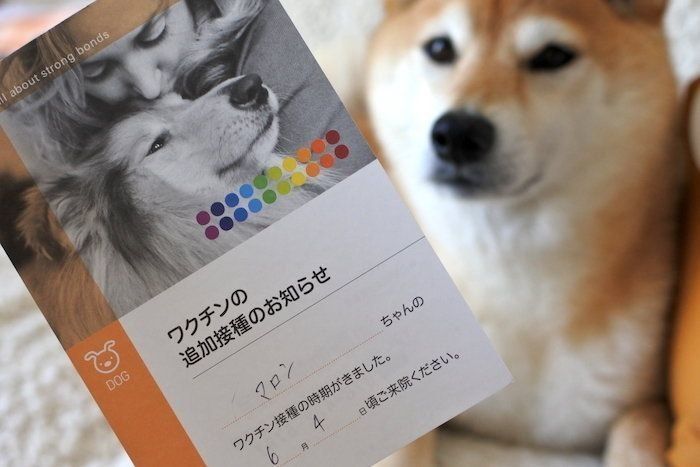 病院から混合ワクチン接種の時期をお知らせするハガキが届きました。ワクチン接種は、副作用が出た場合を考慮して、休診日の前日以外の午前中に行かなきゃいけないし、アレルギーのお薬(アポキル錠)も無くなりそうだったので、1週間前倒しで行ってきました。(1週間ずれても問題ありません)