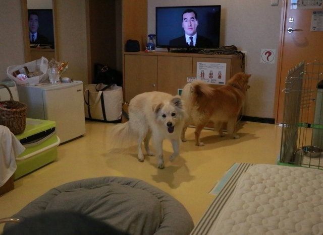 抱き上げて窓の外を見せ、海の上を移動していることを理解させようとしたが、犬には理解できないらしい。「ん?何これ」という不思議そうな顔をしていた。17時間というは、人間も暇だ。本を読んだり、テレビを見たり、お酒を飲んだりしても、なかなか時間が進まない。