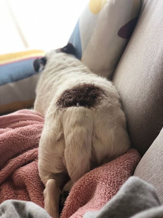 愛犬りくの食後は、ソファーの上でゴロンゴロン❤️