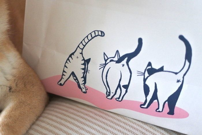 反対側に猫さんの後ろ姿!思わず店頭で「可愛い!」と声を出してしまったぐらい可愛いのです。柴犬が好きな人は、柴のお尻が好きと言う人が多いのですが、猫好きな人もお尻が好きなのでしょうか。あー、可愛い。