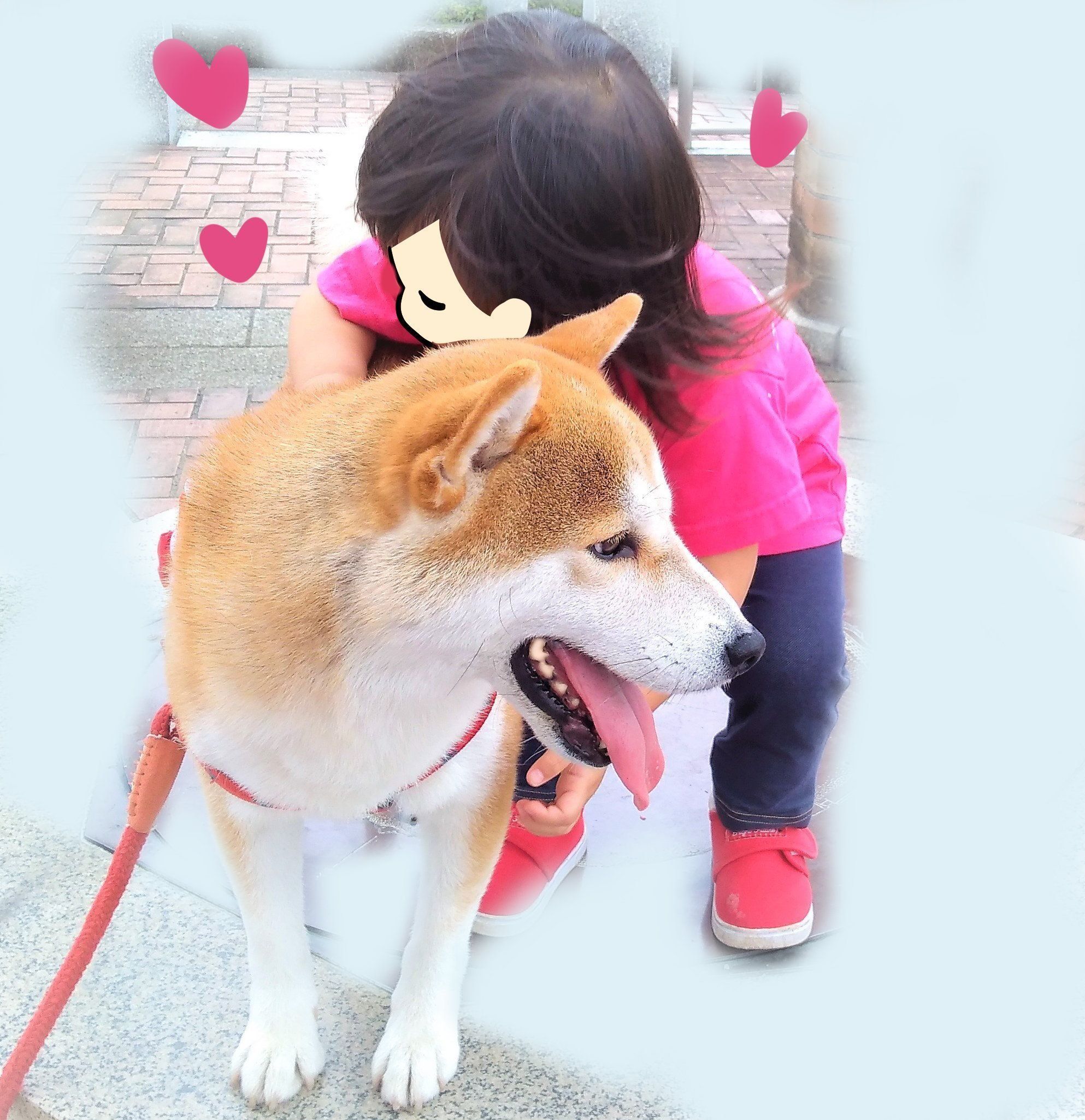 頭や背中を撫でられるタロさん。(犬の中には子供に囲まれると怖いという犬もいますが、タロさんは大丈夫なようです)