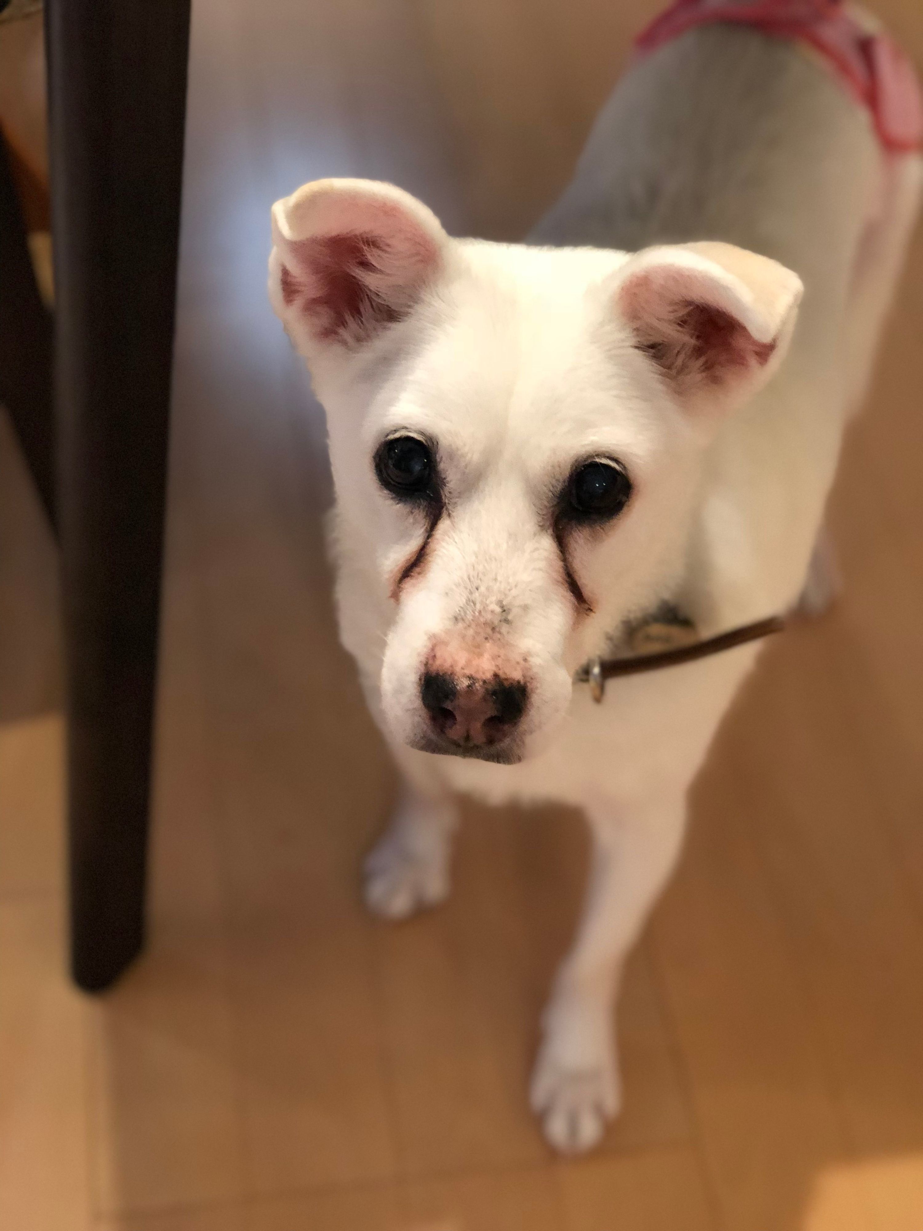 我が家は新しい家族の一員として15歳のおばあちゃん犬、シロさんを迎えました。