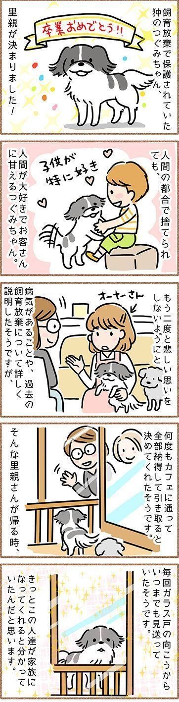 どの子にもつぐみちゃんやてんすけのような出会いが訪れてほしいと思っていますが、それよりまず捨てられる子がいなくなることを祈っています。