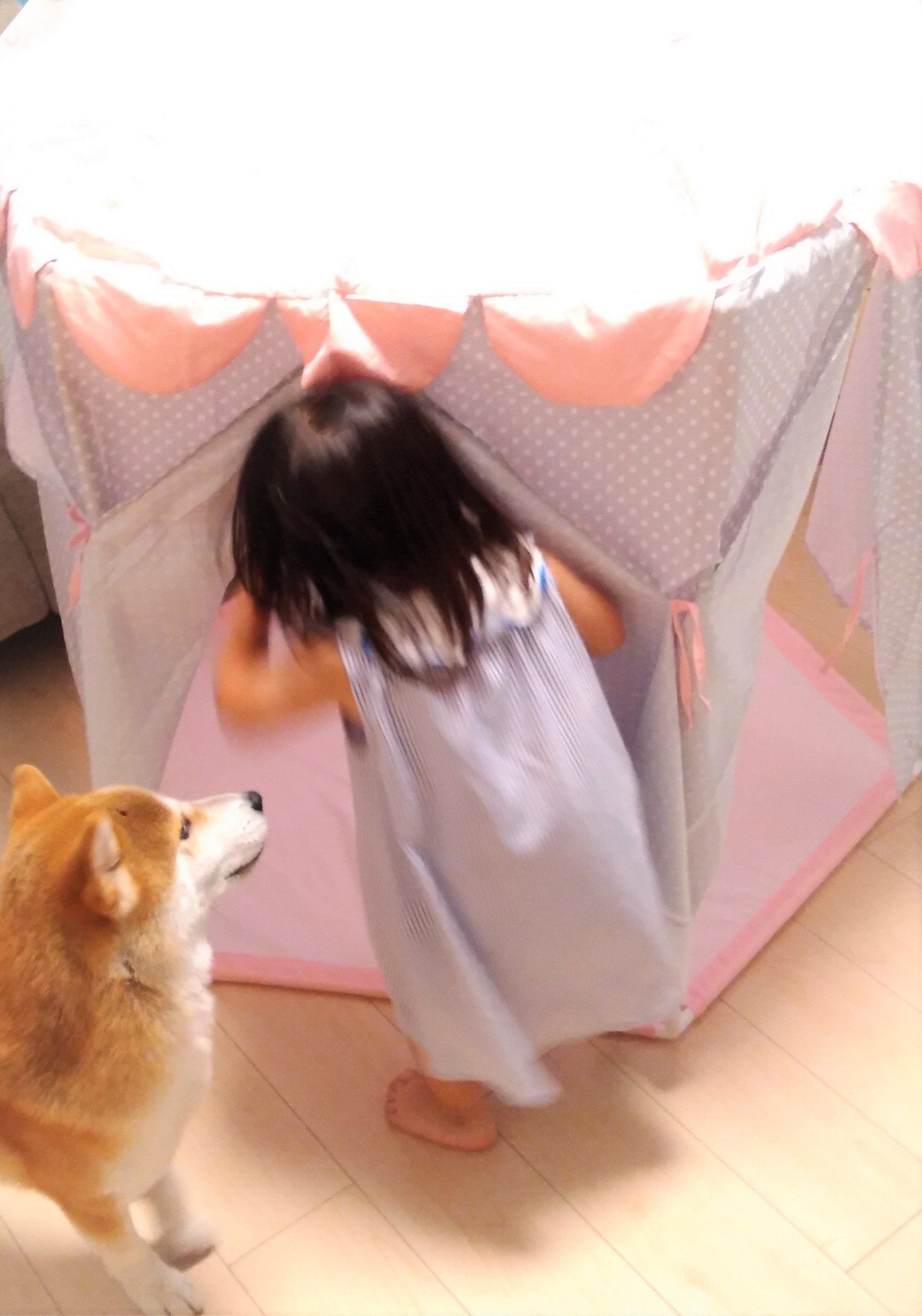 テントに入って遊ぶと秘密基地っぽくて、たしかに楽しい!!