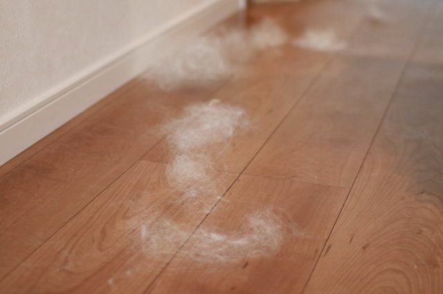掃除機をかけると再び宙に舞うだけなので、フローリングはホウキやハタキでかき集め、ラグは「ぱくぱくローラー」などで掃除していく。そして、自分が着ている服も抜け毛だらけでえらいことになっている。