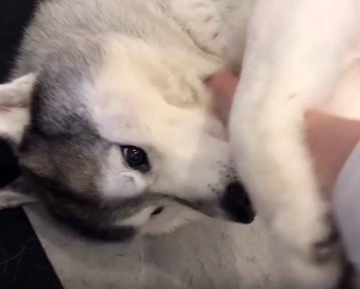 「もっと」「もういい」なでられながら前足で気持ちを伝えるハスキー