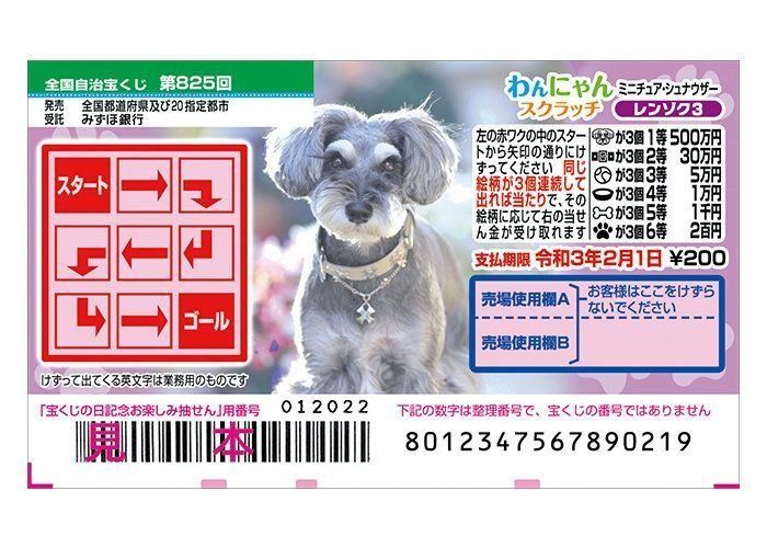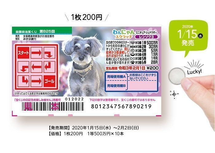 1月15日からは「ミニチュア・シュナウザー」が券面に。1等はなんと500万円!
