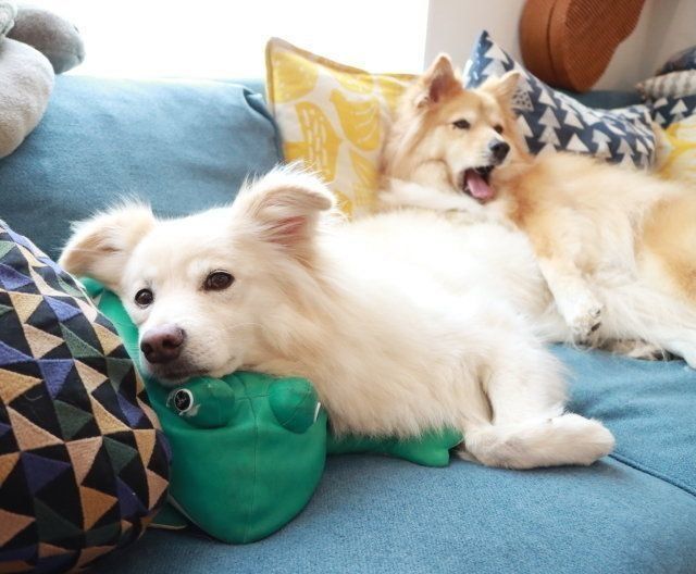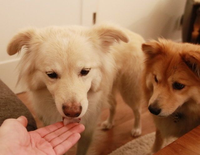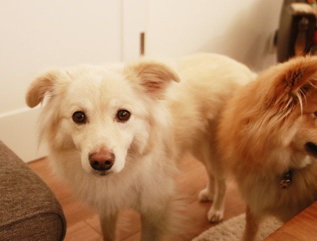 興味深いのは、揚げものや味のついたものは絶対もらえないことが分かっているのか、そういうときは決してアピールしてこない点だ(これはどちらも共通)。あわよくばおすそ分けがゲットできるかもというときを見極めて、悲壮感を漂わせてくる。結局負けてひと切れあげてしまうことになる(結果的に福助にもあげる)。
