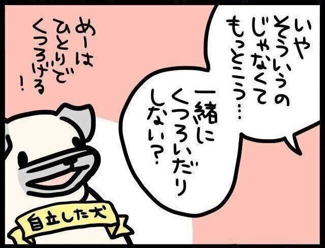 いつもはベタベタしないパグ犬めー、でもしっぽの先が触れただけでも癒される…|連載「パグ犬・めー」vol.71