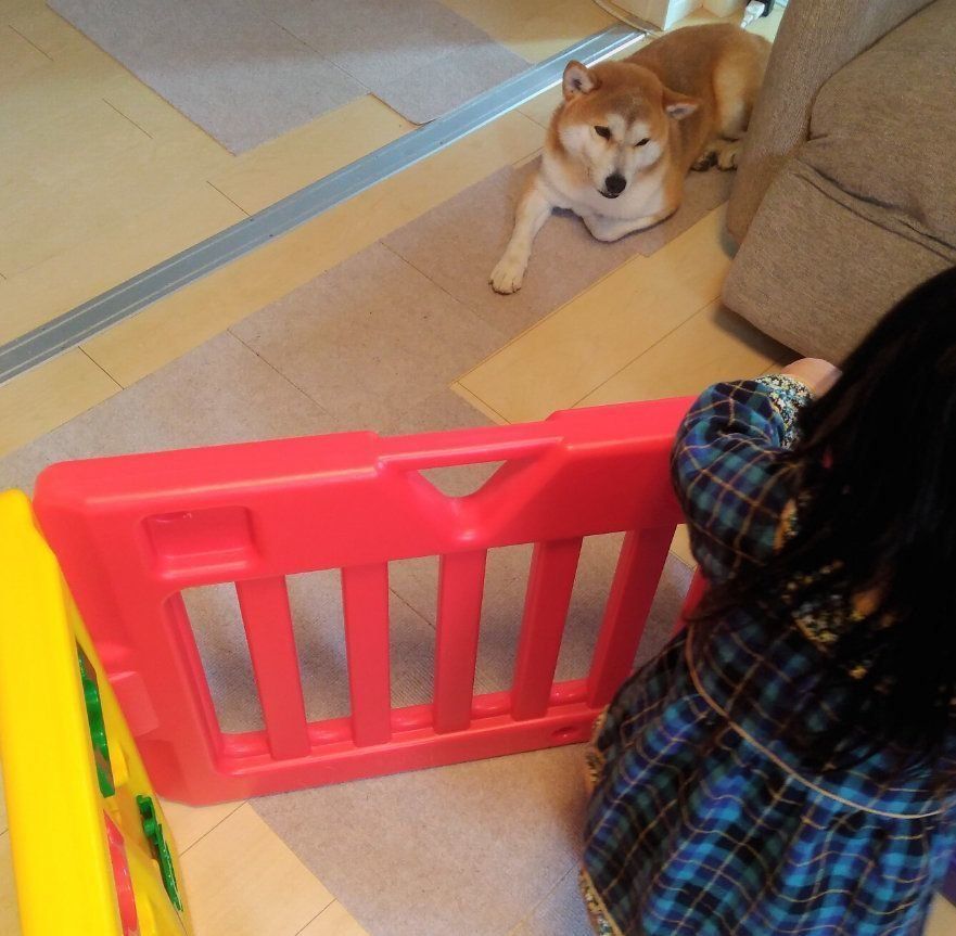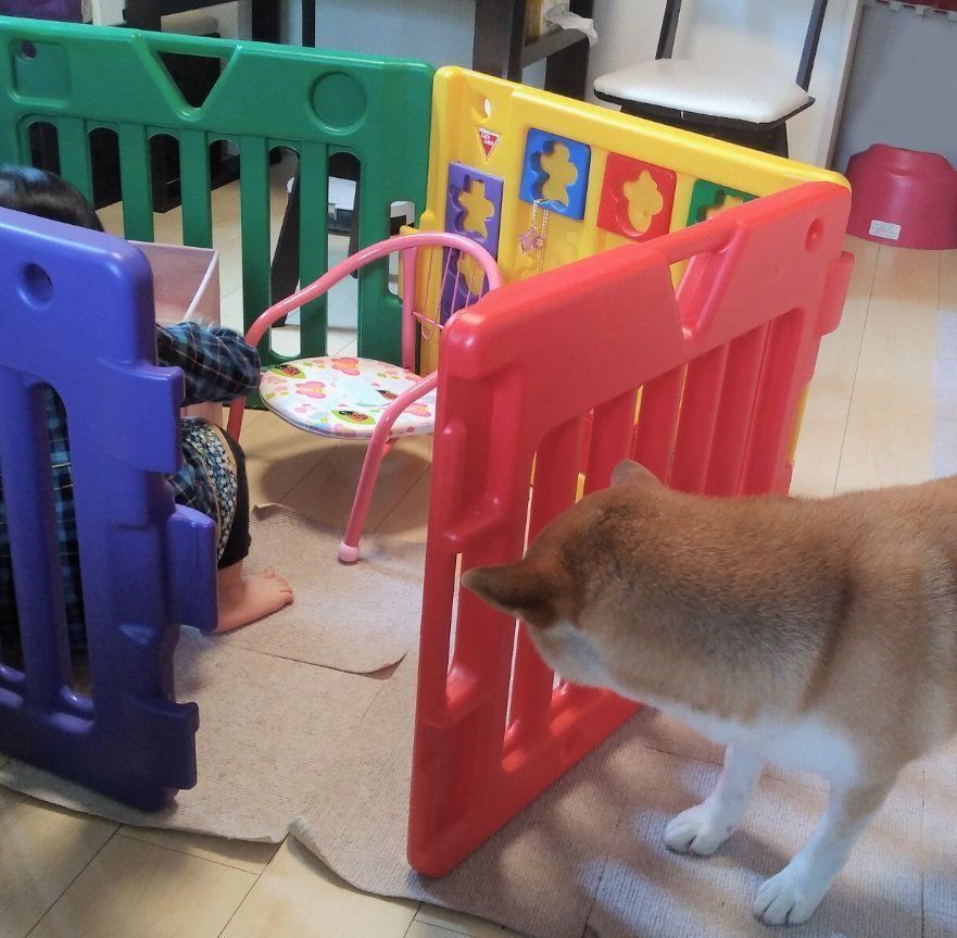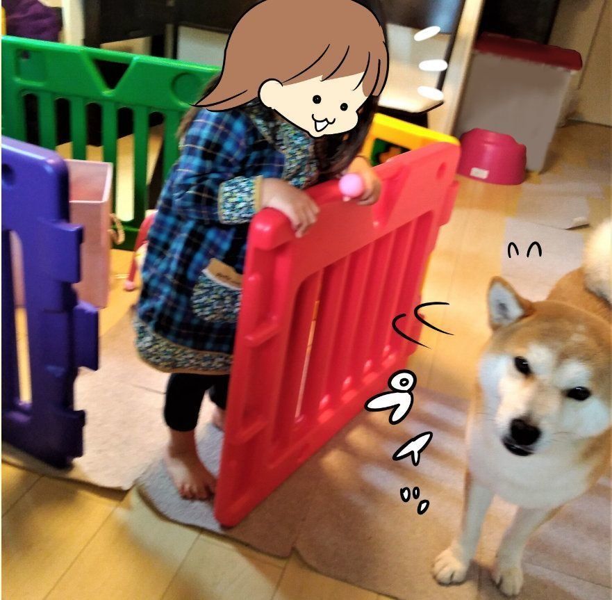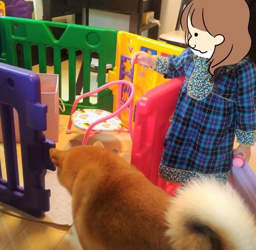 呼ばれたのでサークルの入り口まで来たタロさんですが、立ち止まってしまいます。