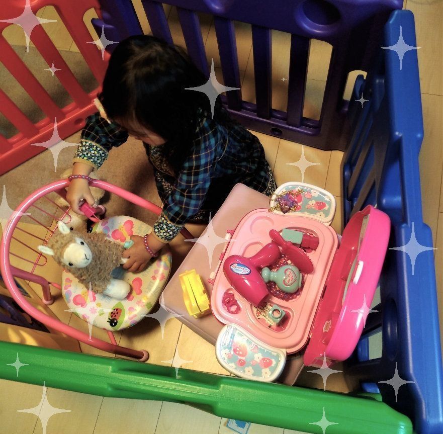 「違う遊びにしてくれないかなぁ~」とでも言っているかのような表情で娘を見ています。