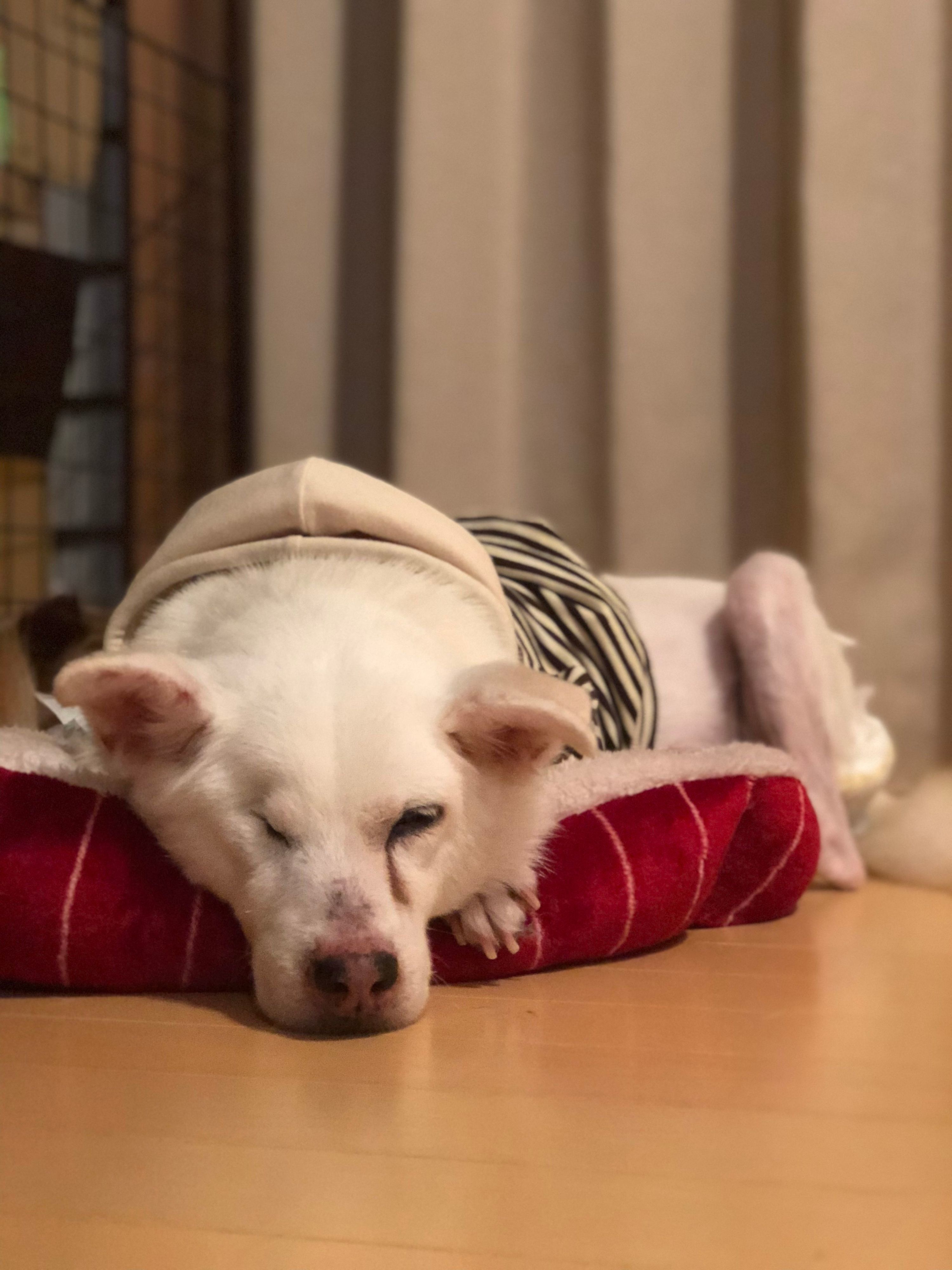 我が家はおばあちゃん犬を新しい家族として迎え、一緒に生活しています。