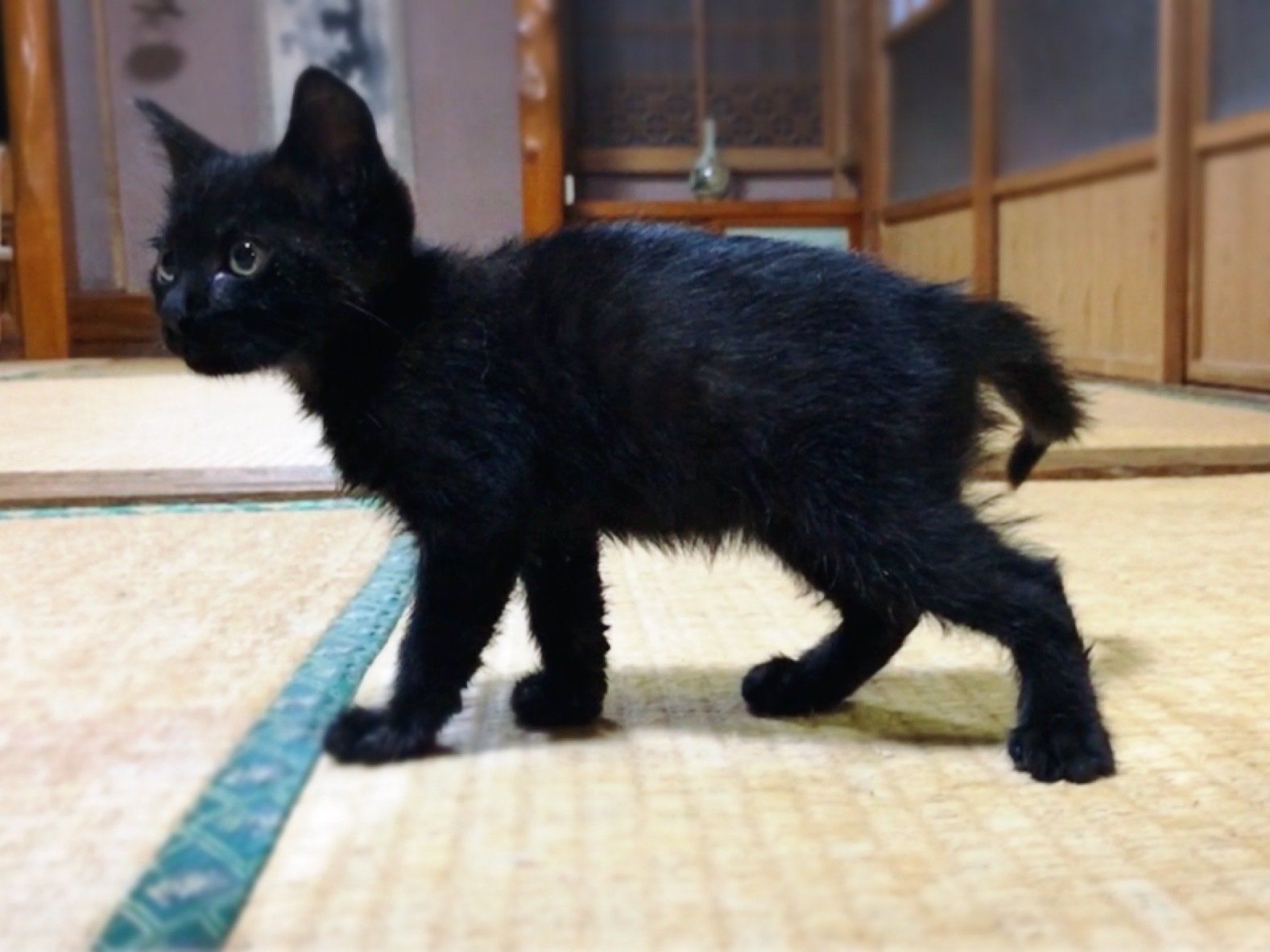 母猫や兄弟猫達の愛情をたっぷり受けていたのでしょうか、疑うことも恐れることも知らず、目の前で大騒ぎしているももに顔を近づけて匂いを嗅ごうとしたり、ケージから出てルンルンとお家の散策を始めました。