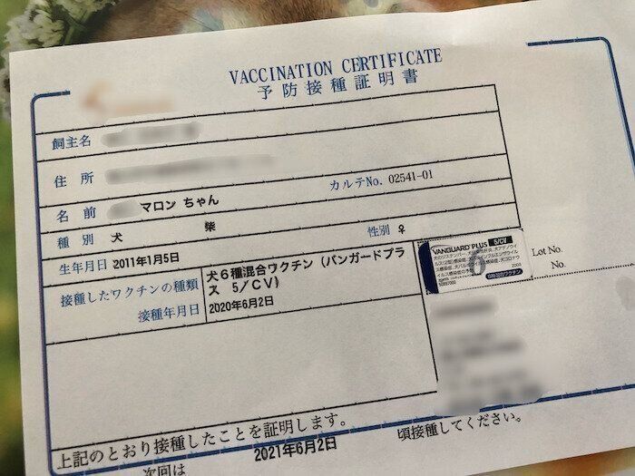 人間の新型コロナウイルスにも早くワクチンができるといいのにと、証明書を見ながらしみじみ思いました。