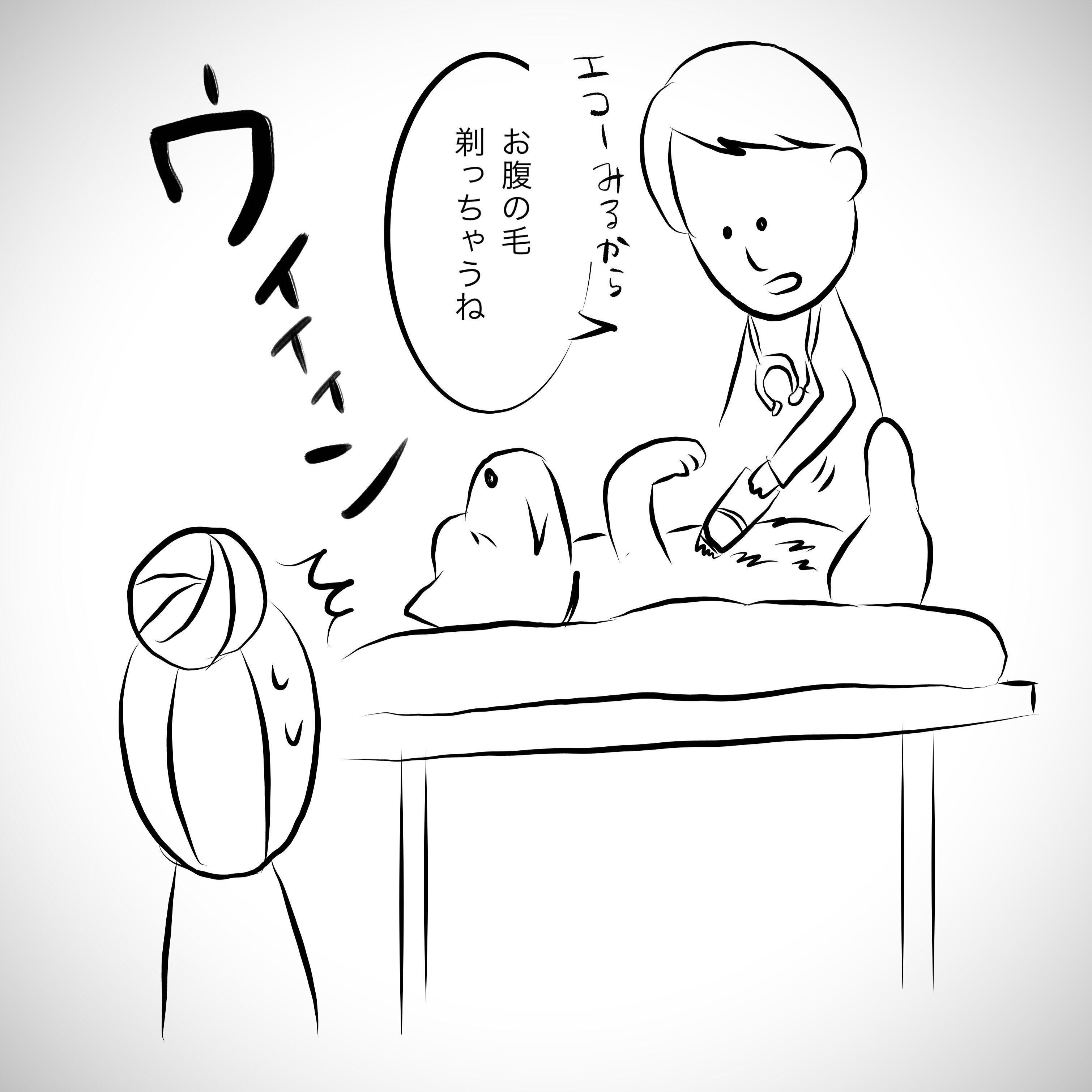 そして、シロさんは仰向けにされ、検査の準備が整ったところで。