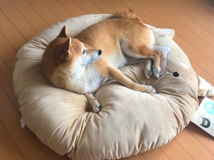 柴犬マロたん、「柴犬クッション」が気に入った!