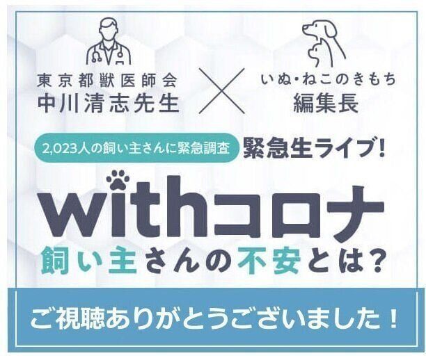 緊急生ライブ『withコロナいぬ・ねこのきもちライブ』 見逃した方はこちらで視聴できます!