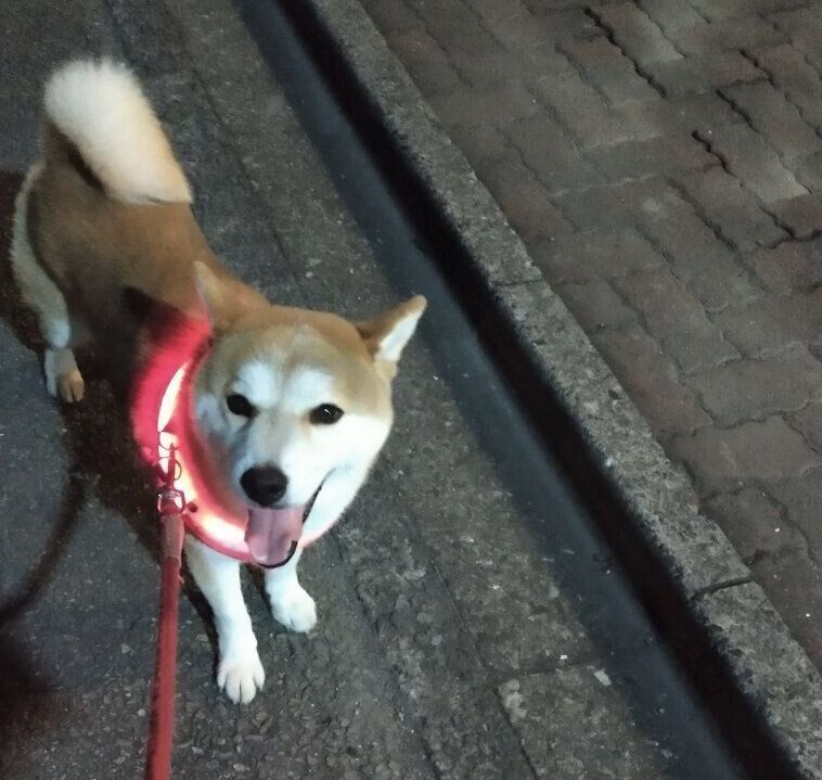 暑い日のタロさんの散歩は、気温が少し下がる夜に行っています。