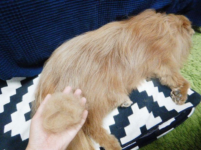 とはいえ、全く抜けないわけではなく、ブラッシングするとある程度まとまって長い毛が抜けるという毛質です。