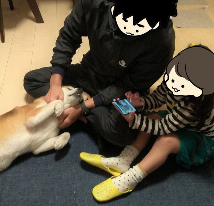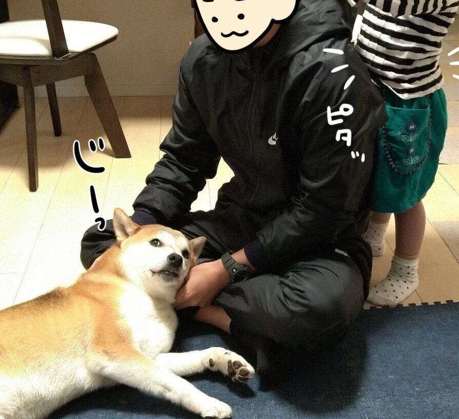そして娘がパパにピタッとくっつくと、その瞬間、タロさんはパパをじーっと見つめ始めます。