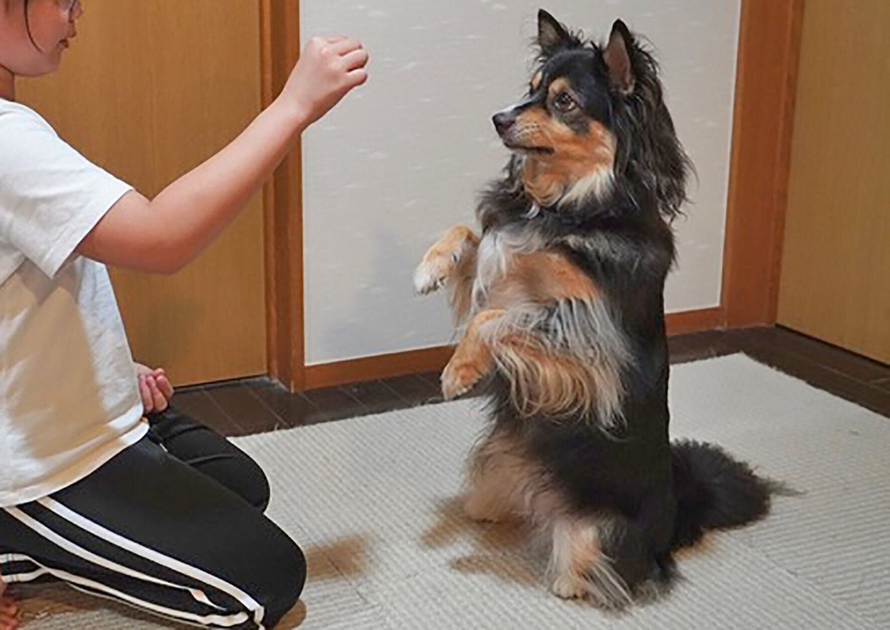 ごほうびのフードを用いてさまざまな芸を飼い主が犬に教える。その芸の合図を子どもたちに伝える。犬は子どもたちの望みに応えるとごほうびがもらえる。