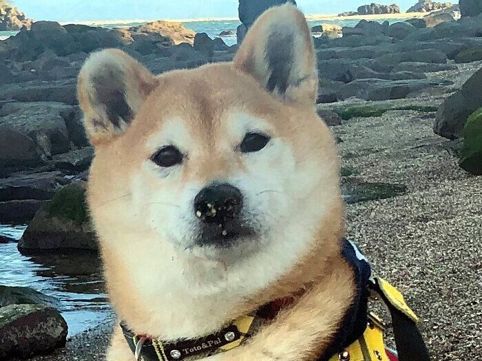 柴犬マロたん、砂浜でのお散歩後、目がしょぼしょぼになってしまって…