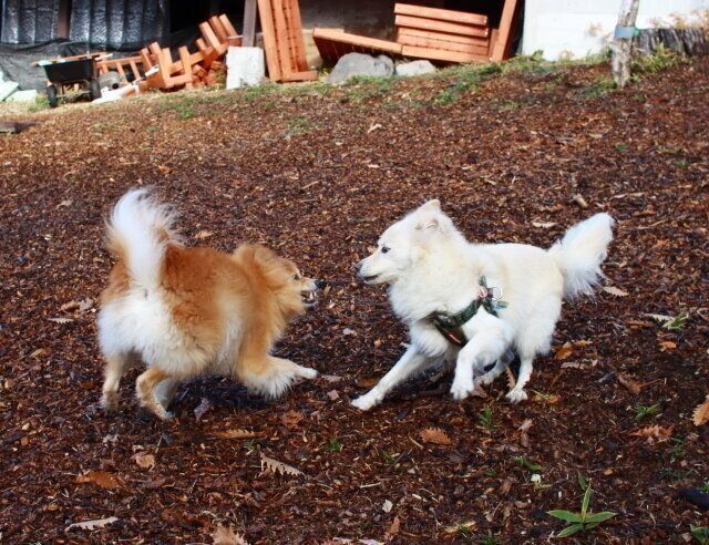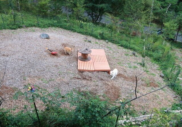 思うに、彼らにとって山の家は最初こそ刺激的だったが、次第に当たり前になってきて喜びが薄れてきたのではないかと思う。雑草だらけだったところを何度も何度も草刈りして、フェンスを張り、ウッドチップを撒くために(足が汚れにくいように)階段を何往復もして、現在のドッグランになるまでがどれだけ大変だったか、全然分かっていないらしい。別に感謝されたいわけでもないが、ドライすぎる。