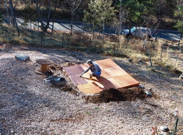 少し前から、ドッグランでくつろげるようにウッドデッキを組み立てているのだが、作業していると横にいる大福は明らかに「つまんねー」という顔をして、中に入りたがる。そして、やっぱり暖かい室内で昼寝する。