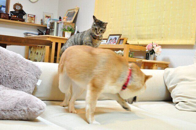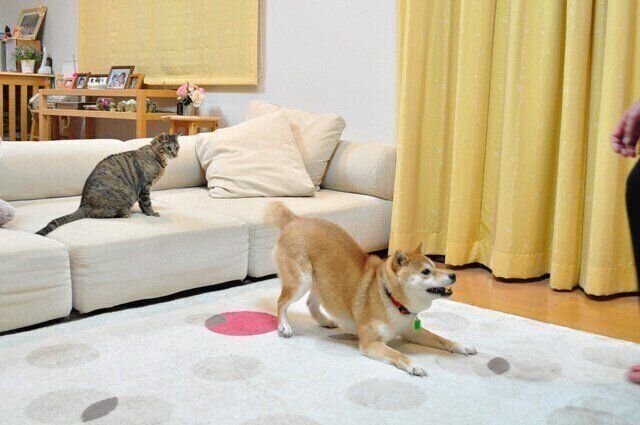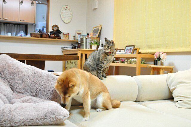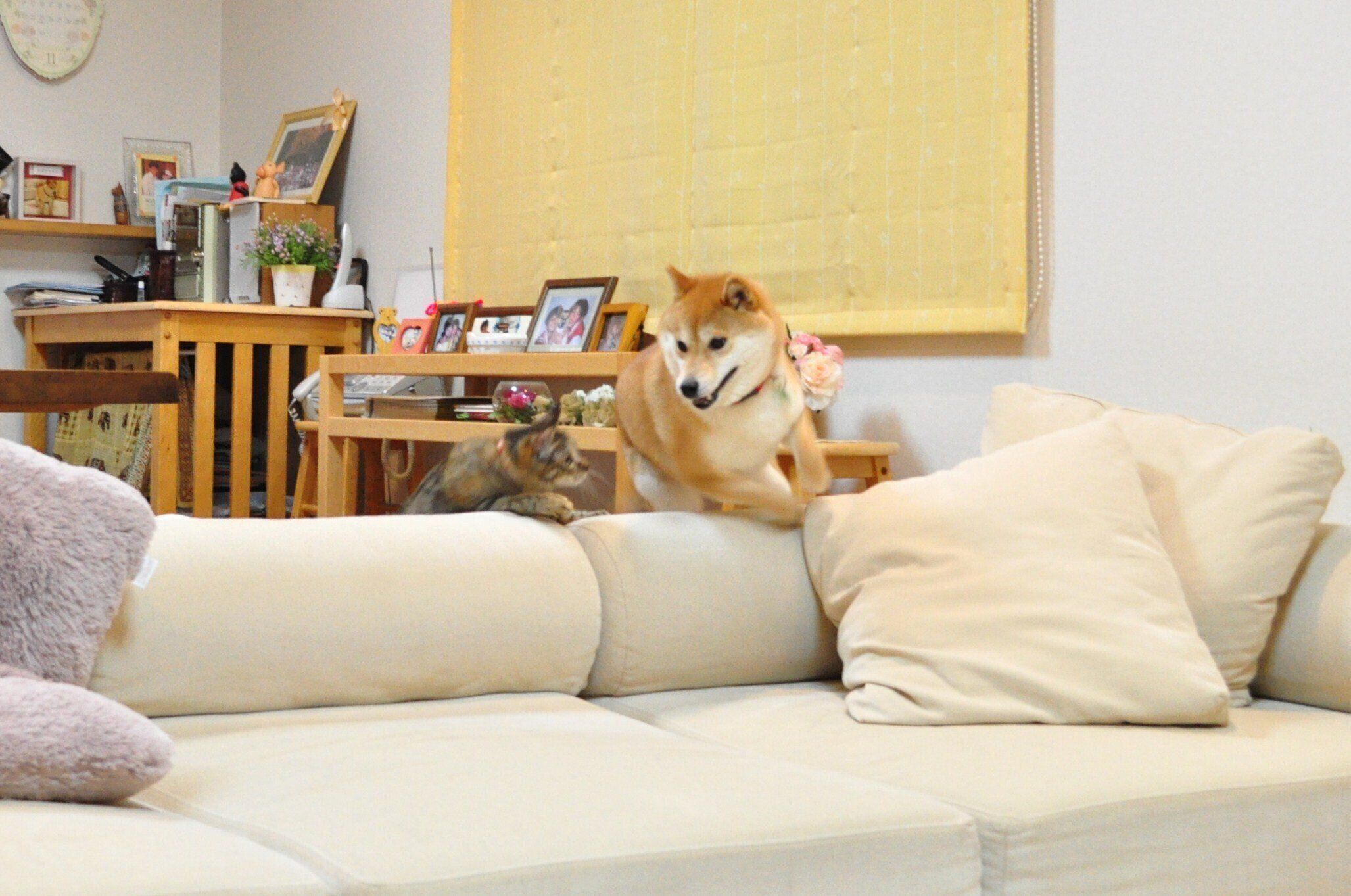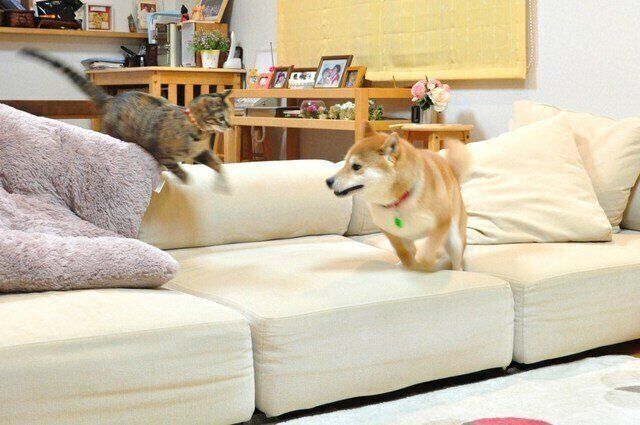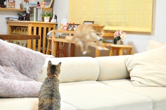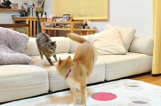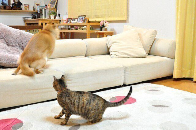 息が切れるほど何度もソファを飛び越えると、鬼ごっこは終了です。