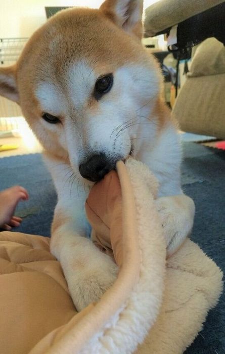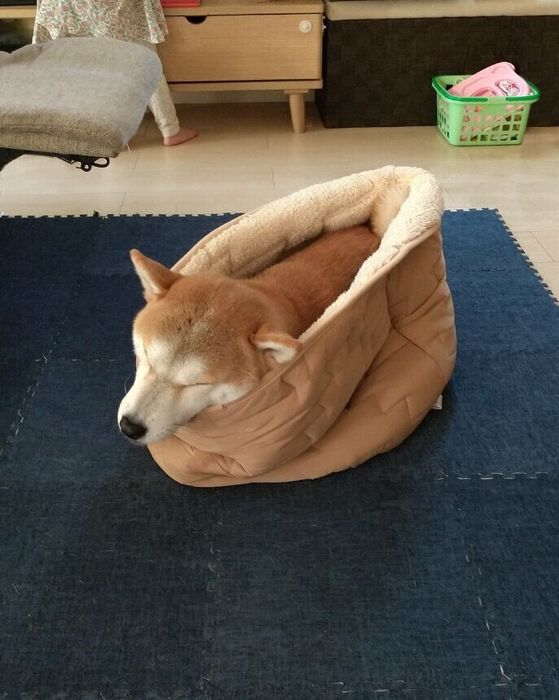 新しいオシャレベットに入る柴犬タロさん、だんだん別の何かに見えてきた!|連載「モフモフ柴とプニプニ娘」第99話