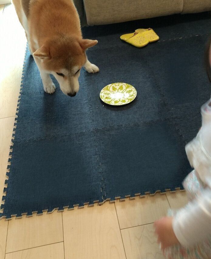ボーロをのせていく娘の手をじっと見つめるタロさん。