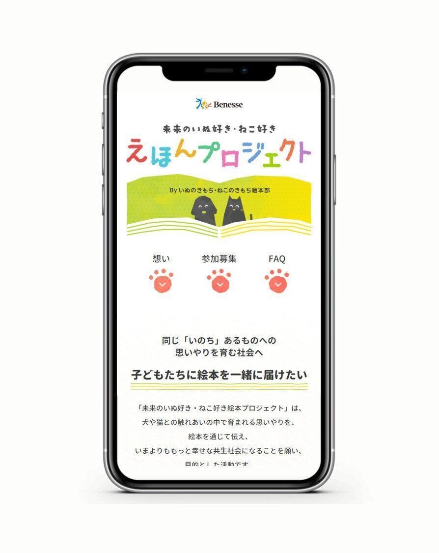 この取り組みの目的は、「犬や猫との触れあいの中で育まれる思いやりを、絵本を通じて伝え、いまよりももっと幸せな共生社会になることを願い、目的とした活動」となり、
