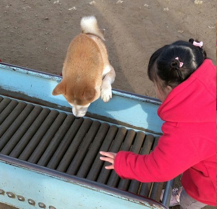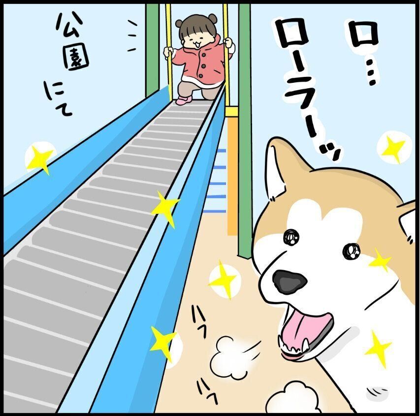 ローラーすべり台に興味津々!柴犬タロさん|連載「モフモフ柴とプニプニ娘」第103話
