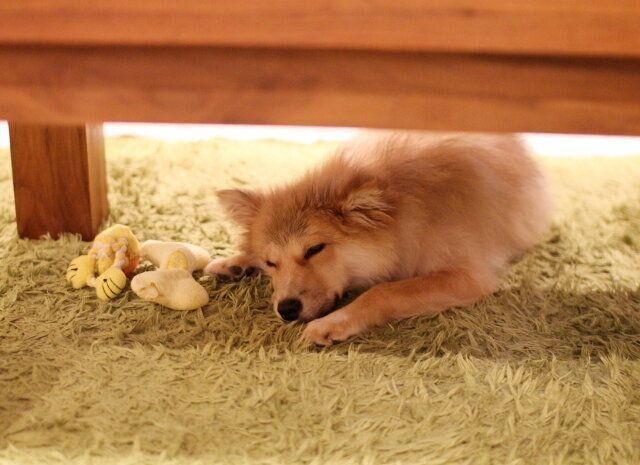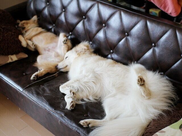 そんな苦難を乗り越えて、今では何の手もかからない丸いタヌキになった。だから今、愛犬の破壊活動に悩んでいる人がいたら、そのうちきっと落ち着くから大丈夫だと言いたい(福助は2才頃だったかな)。