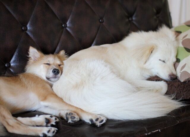 それでも大吉がいることで福助は安心し、いつも後を付いて回り、戦いを挑んでは手加減をしてもらいながら遊んで疲れて一緒に昼寝していた。
