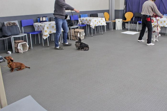 「オスワリ・マテ」や「フセ・マテ」ができることは必要ですが、そうした行動・動作が特定の状況でできても、社会化ができていないとクリアできない項目がほとんどです。