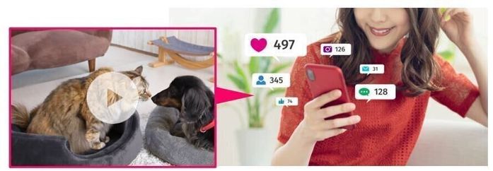 「HDペットカメラ」なら撮った動画はアプリからスマホに保存*でき、そのままSNSに投稿もラクラク!同時に8台のスマホが接続可能なので、ご家族がそれぞれのスマホで動画を楽しめるのも嬉しいポイントです。