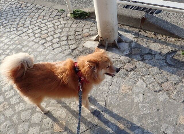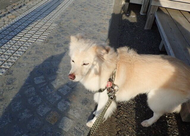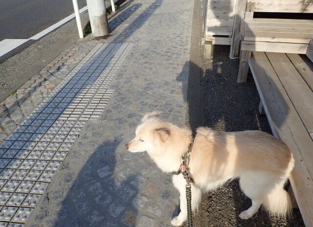 苦手なのは国道を渡ること、正確にはバイクの音が嫌なだけで、渡って砂浜に降りれば震えはだいたい治まる。大吉にとって試練なのだろう。そして謎なのは、帰りに再び国道を渡るときは震えていないことだ。スッキリしたからなのか、どんなルールなのか分からない。