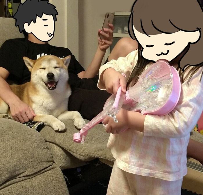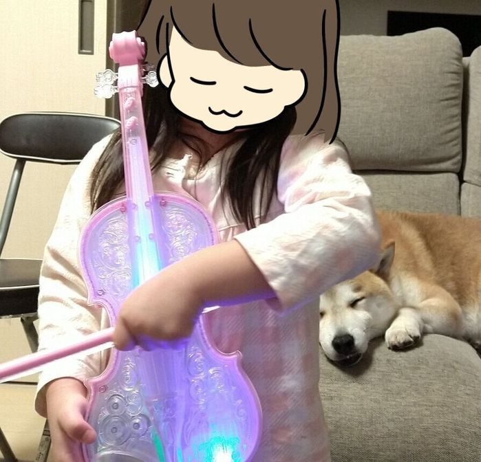 バイオリンを貰った娘は大喜びで、タロさんにもバイオリンを自慢しています。