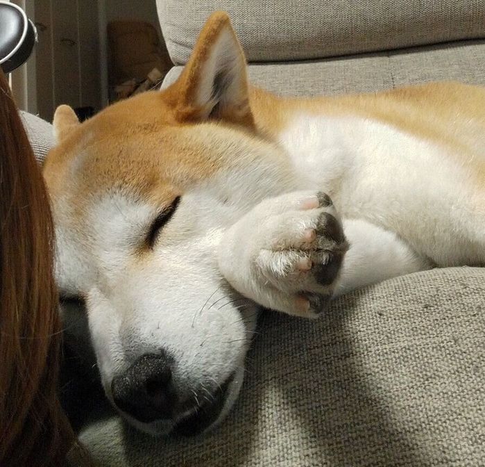 タロさんはどうやら寝落ち寸前のようです。ずっと目を閉じているのが笑顔に見えてしまいました。